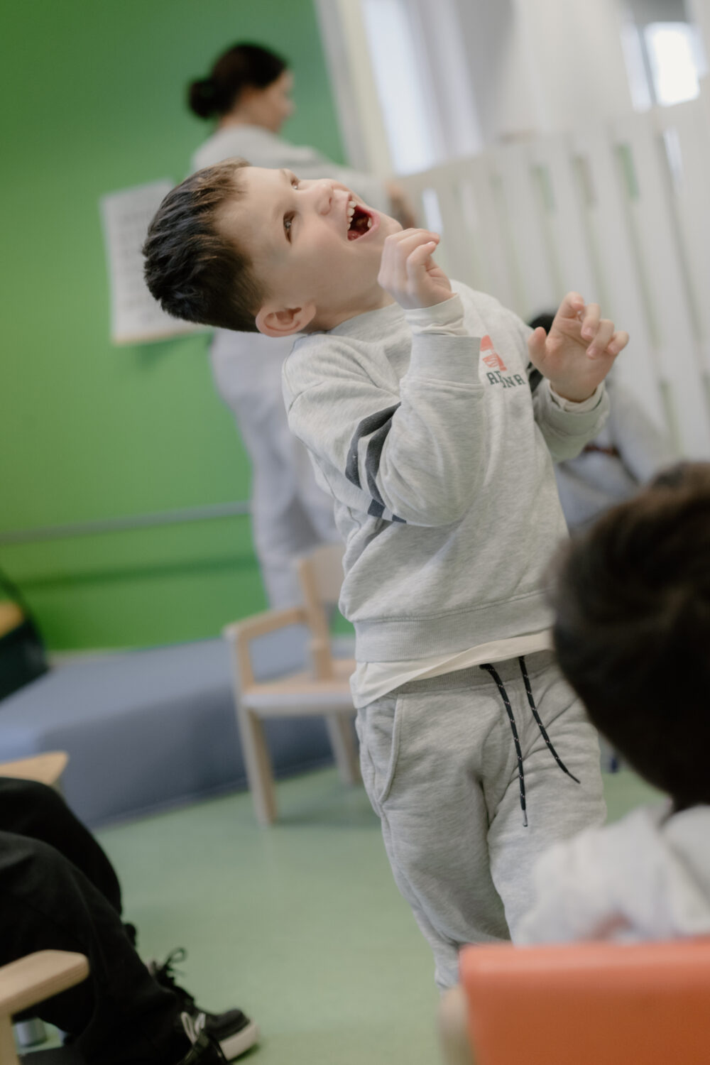 We stelden Zoë gerust: het is oké als bepaalde kinderen niet meteen meedoen of plots weggaan. Door aanwezig te zijn in de ruimte zijn ze op hun manier betrokken.