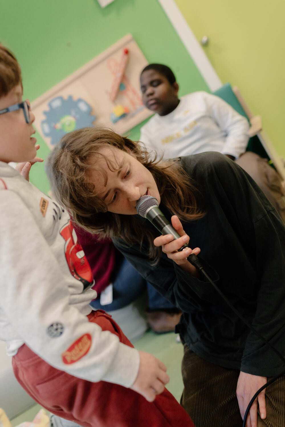 Met een externe kunstenaar of begeleider samenwerken is daarom altijd een beetje spannend, beamen Hilde en Katrien. Toch hebben ze geen seconde geaarzeld toen Lasso voorstelde een artistiek traject in de klas te organiseren. Ze schreven mee aan de oproep, vervolgens ging Lasso op zoek naar een geschikte kunstenaar. En die werd gevonden: kort daarop ging muzikaal artieste Zoë De Bock aan de slag voor zes uur artistieke ateliers, verspreid over zes weken.