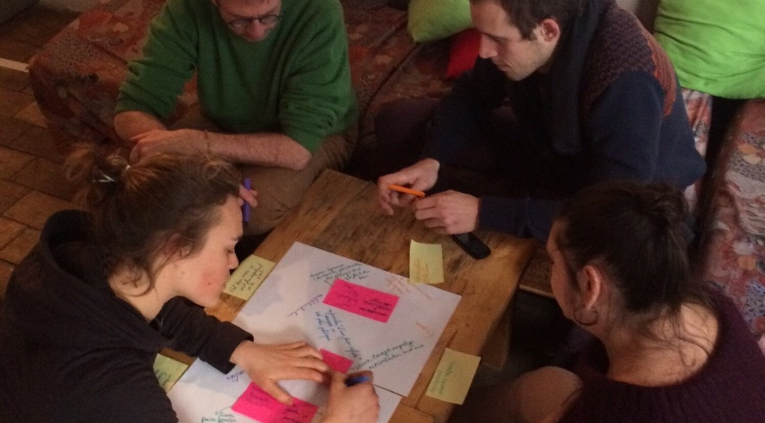 Als afsluiter van de namiddag gingen we met kunstenares Einat Tuchman aan de slag tijdens een creatieve brainstorm. Ze vertrok hiervoor vanuit de denkwijze van de InCompany Workers’ Club, een groep van performancekunstenaars die workshops en brainstorms organiseert rond het thema "werk". De brainstorm focuste op de vraag: "Hoe groot is de afstand tussen de waarden die we aanhangen en dat wat we doen?"