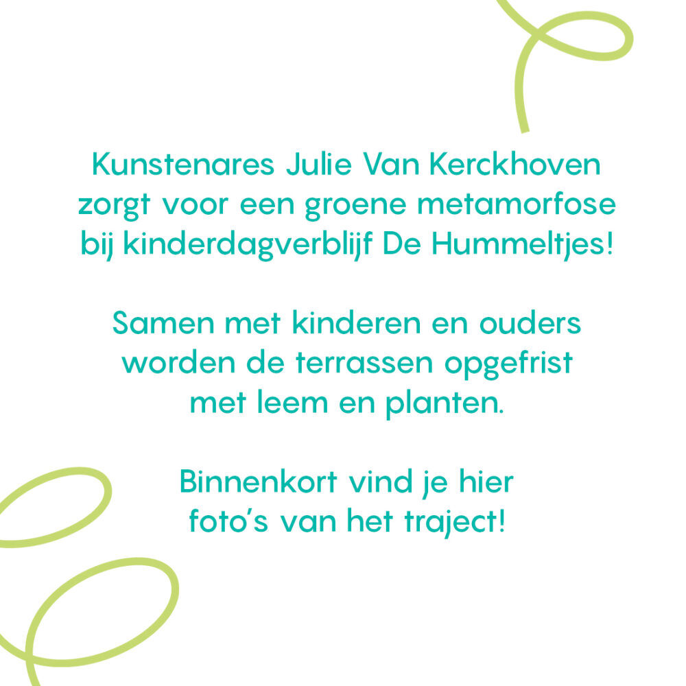 Kunstenares Julie Van Kerckhoven zorgt voor een groene metamorfose bij kinderdagverblijf De Hummeltjes!
