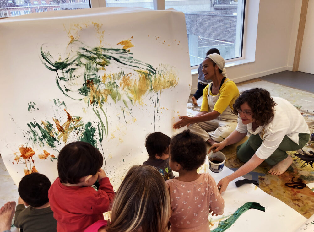 Kunstenaars Virginie Bailly en Marie-Rose Mayele bezochten met de allerjongsten en hun entourage de wereld van kleuren, dans, zang en creativiteit. Het werd een ontdekkingsreis met verf op basis van kruiden en planten. Dat zorgde niet enkel voor een visuele ervaring maar ook voor een zintuiglijke beleving.