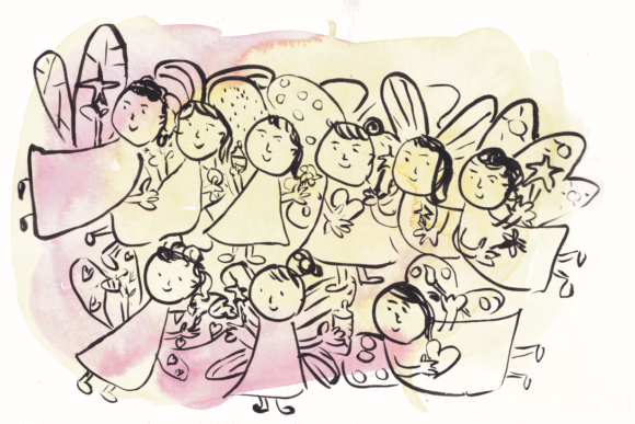 een zachte, aaibare wereld vol wolken waarin ze konden kruipen, liggen,